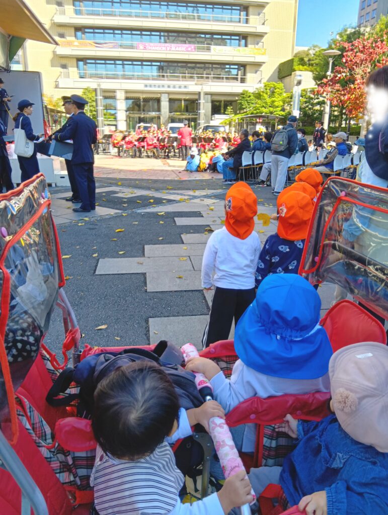 街中をお散歩していると、イベントに遭遇することもあります。葵区役所の前で、消防隊の生演奏を楽しむことが出来ました。
